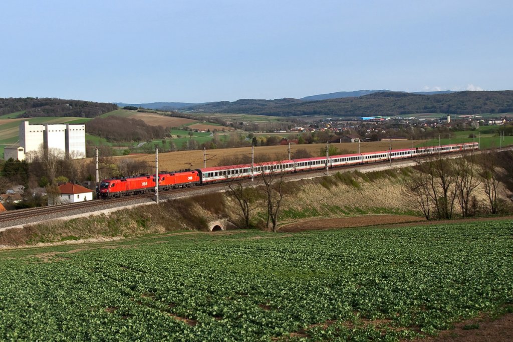Licht und Schatten begleiten den OEC 865 zwischen Schildberg und Böheimkirchen am 09.04.2011. (alla foto)