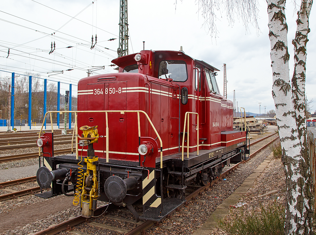 die 364 850-8 in der klassischen DB-Farbgebung gefällt ebenso wie die Bildgestaltung mit den Birkenstämmchen rechts im Bild.