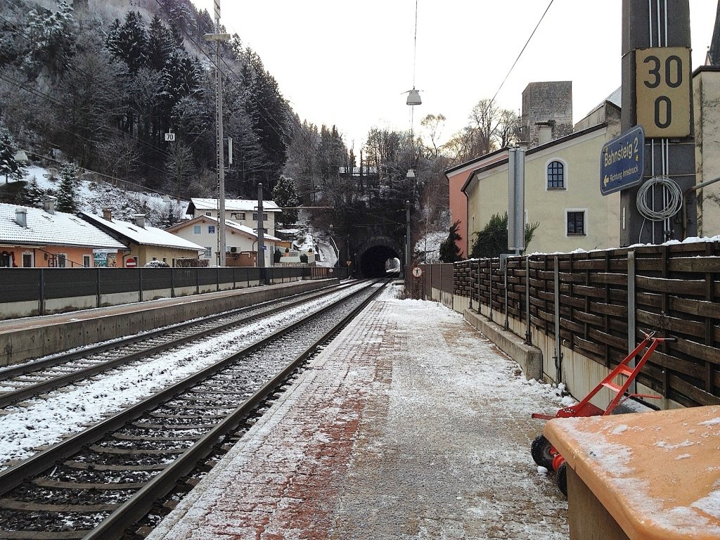 Haltestelle Rattenberg-Kramsach. Hier Blick in Richtung Brixlegg, Jenbach, Innsbruck.(18.12.2011) (zum Bild)