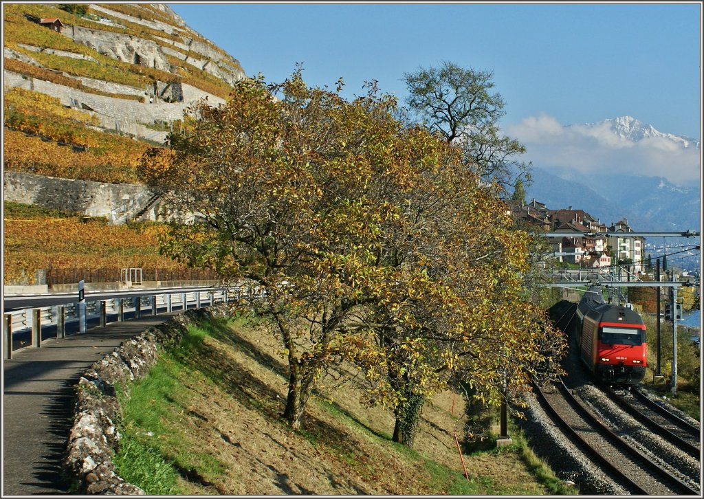 Gekrönt wird die wunderschöne Bildgestaltung noch durch den frisch verschneiten Rochers de Naye im Hintergrund.