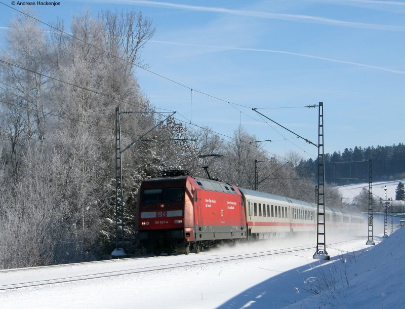 eine schöne Aufnahme des gesamten TGV. Der TGV heute morgen in Ulm war pünklicht 7:43 ab - es war noch dämmrig, ziemlich kalt und windig - und es hat mal wieder geschneit.