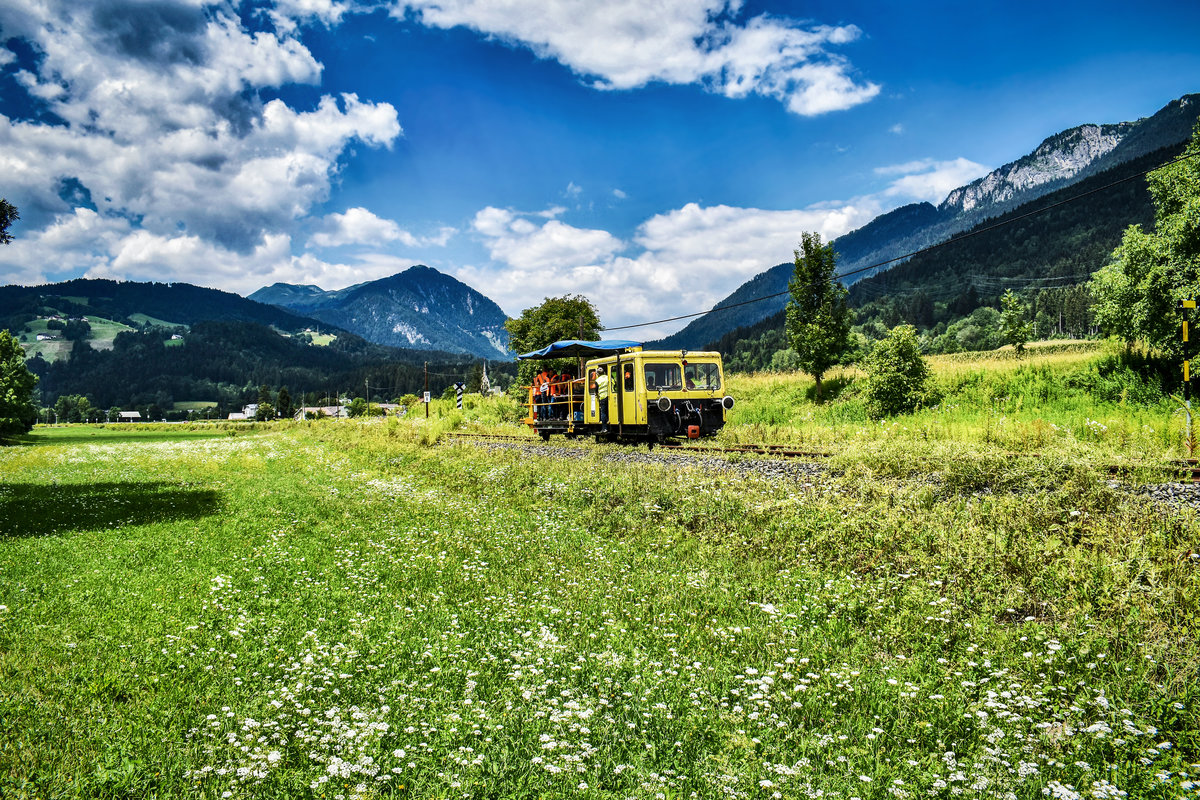 Nun war es endlich so weit und der erste Zug, fuhr nach nun ca. eineinhalb Jahren Stillstand wieder durch das obere Gailtal. Nachdem wir unser "Postkastel" ohne Probleme nach Hermagor brachten, ging es anschließend, mit Vertretern der Abteilung 9 des Landes Kärnten, zur behördlichen Befahrung wieder retour nach Kötschach-Mauthen. Hier zu sehen ist der X 626.109 der Gailtalbahn Betriebs GmbH, als Mess 9901 kurz vor Kötschach-Mauthen. Aufgenommen am 18.7.2018. Mehr zu unserer ersten Fahrt gibts hier zum nachlesen ;-) www.gailtal-journal.at/kultur/das-postkastl-auf-schiene/7... www.gailtalbahn.at/ www.facebook.com/vereingailtalbahn/ (zum Bild)
