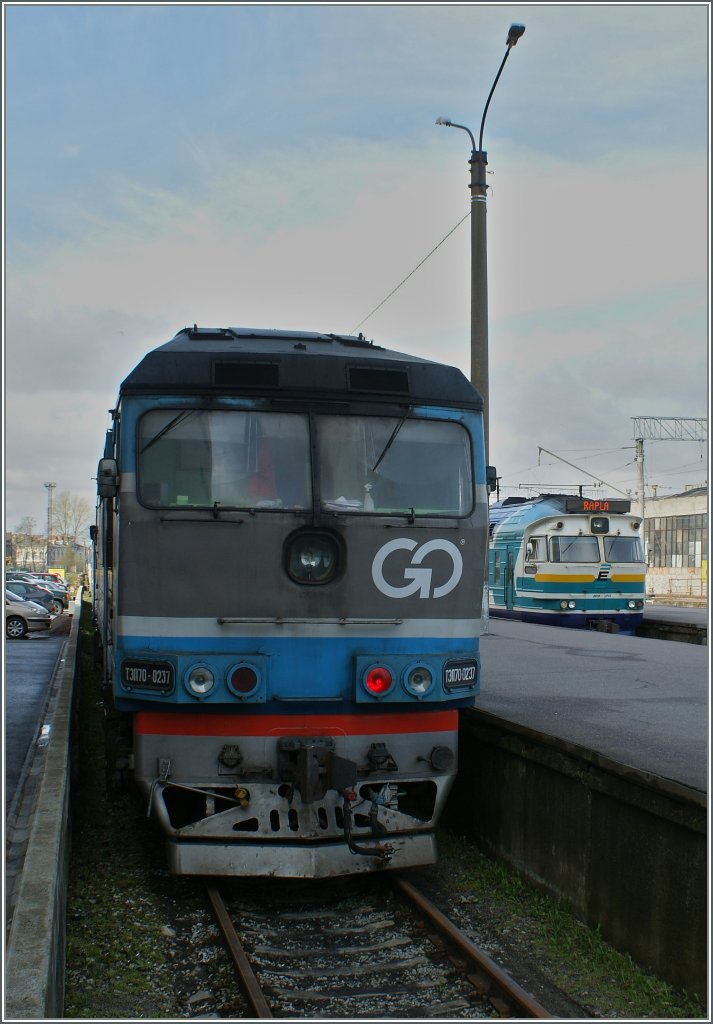 Während der DR1B 3713 nach Rapla bereitgestellt wird hat dieGO-Rail TEP70 0237 mit ihrem Nachtzug aus Moskau ihr Ziel Tallinn schon erreicht. 7. Mai 2012 (voir l'image)