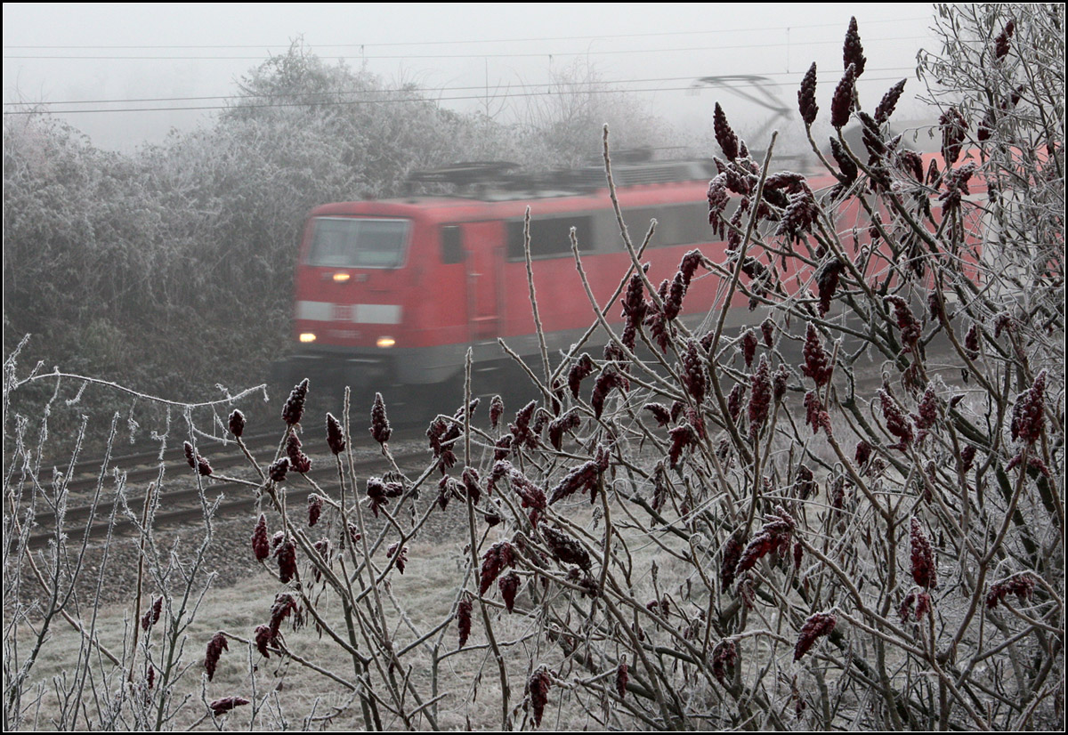 diese Aufnahme ist mir gestern auch schon ins Auge gestochen. Das gelbe Licht der Sonne im Kontrast zu dem kalten Weiß des Reifes. Sehr schön!