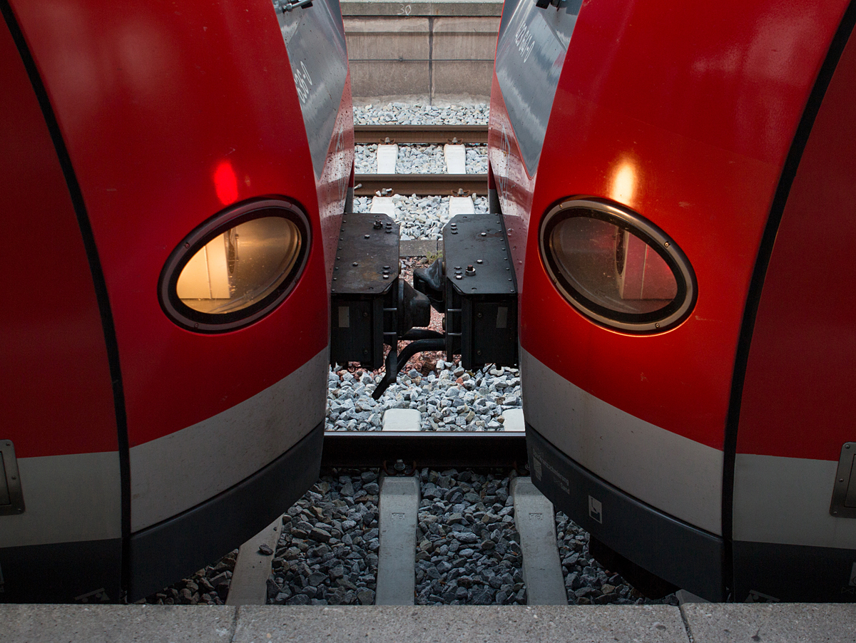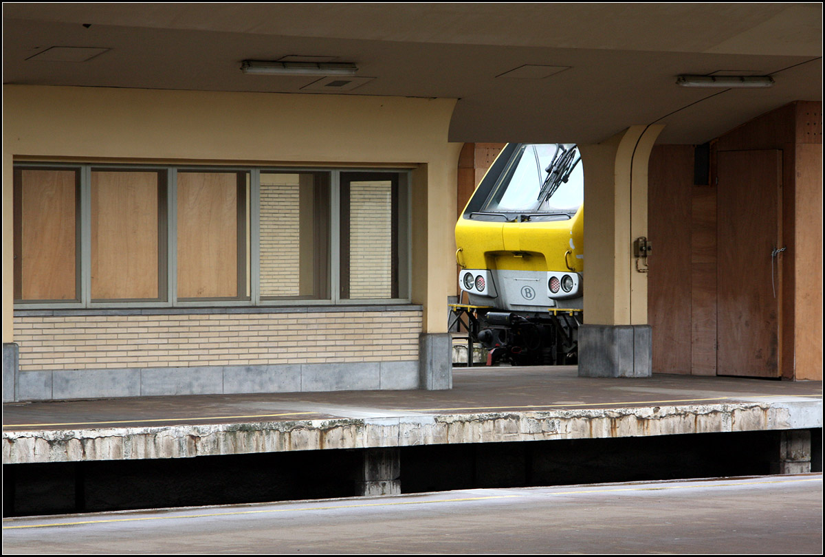 Besonders eindrücklich bei dieser Bildgestaltung ist, dass der Zug nicht am Bildrand abgeschnitten wurde, sondern diese "Aufgabe" eine Bahnsteigstütze übernimmt.
