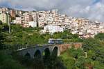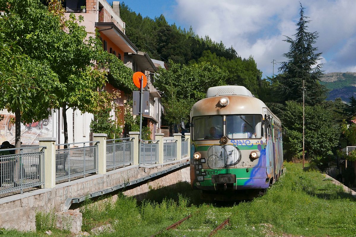 60 km und zwei Stunden nach Abfahrt im am Meer liegenden Arbatax befindet sich ADe 05 als Touristenzug "Trenino Verde" am 28.09.2019 kurz vor der Einfahrt in den auf 555 Meter über dem Meer liegenden Bahnhof von Lanusei. Im September 2019 fand samstags und sonntags jeweils eine Fahrt/Rückfahrt nach Gairo statt. Wie auch auf der Strecke zwischen Mandas und Cagliari ist auch auf dieser Strecke leider nur ein verschmierter Triebwagen unterwegs. Der "Trenino Verde" wird von der ARST (TRASPORTI REGIONALI DELLA SARDEGNA), der für den öffentlichen Verkehr in Sardinien zuständigen Gesellschaft, betrieben. (zum Bild)
