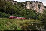 Nachschuss auf 644 037-3 und 644 022-5 (Bombardier Talent) am Mühlgraben in Neidingen (Beuron). 🧰 DB ZugBus Regionalverkehr Alb-Bodensee GmbH (RAB | DB Regio Baden-Württemberg) 🚝 RE 22349 Donaueschingen–Ulm Hbf 🚩 Bahnstrecke Tuttlingen–Inzigkofen (Donautalbahn | KBS 755) 🕓 1.8.2020 | 18:18 Uhr (alla foto)