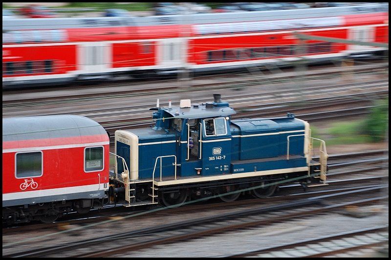 365 143 bei Rangierarbeiten in Ulm Hbf. Aufgenommen als Mitzieher am 14.Juni 2008. (zum Bild)