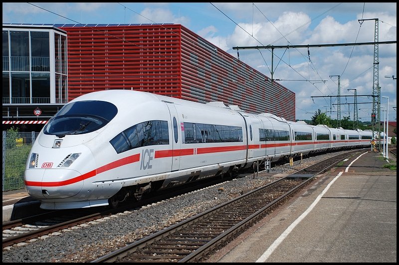 Der ICE-3 "Aalen" bei seiner Ankunft in Aalen am 21.Juni 2008. Er blieb 1,5 Stunden in Aalen und fuhr nach seiner Taufe zurück nach München. (zum Bild)