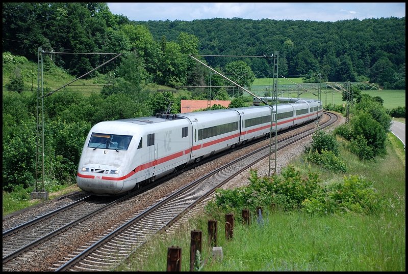 Ein ICE-1 war am 14.Juni 2008 nach München Hbf unterwegs. Aufgenommen bei Urspring. (zum Bild)
