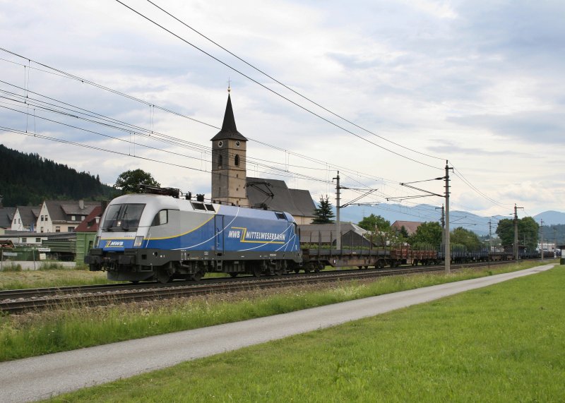 Nach dem Stürzen gehts für 1116.911 mit dem SGAG 95015, der mit Stahlbrammen beladen ist, weiter nach Deutschland. Hier durchfährt der Zug gerade Kammern (16.06.2008) (zum Bild)