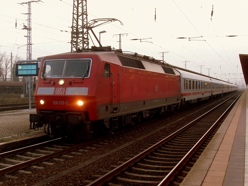 Fragt sich, wie lange die 120 hier noch fahren kann, nachdem schon große Teile der Oberleitung im Himmel verschwinden...
