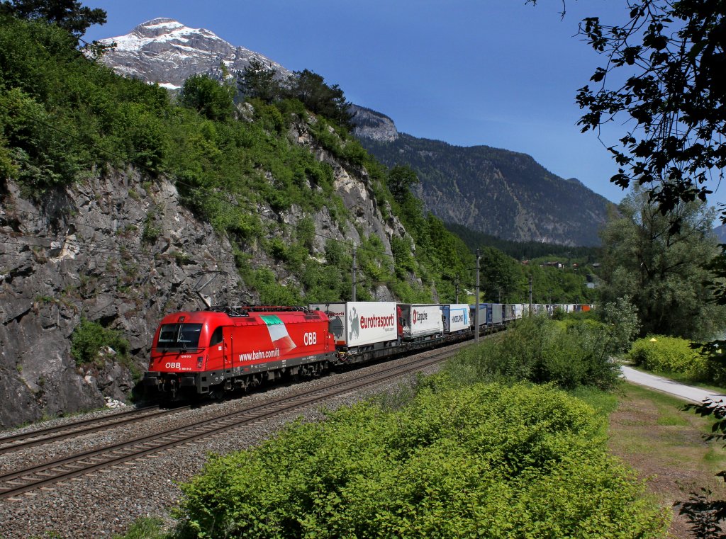1116 126 "Licht ins Dunkel" zieht einen Innofreight Containerzug von Zeltweg in Richtung Bruck an der Mur. Leider verunstaltet zur Zeit, ein großer brauner Fleck diese wunderschöne Maschine. Lind bei Zeltweg 21.5.2012 (alla foto)