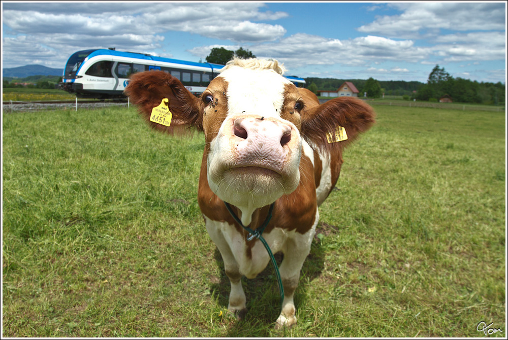 also, das Interesse der Kuh gilt eindeutig nicht dem Triebwagen! Als Bahnbilder gefallen mir die anderen schönen Fotos zwar besser, aber dieses Bild hier m u s s man einfach gesehen haben!