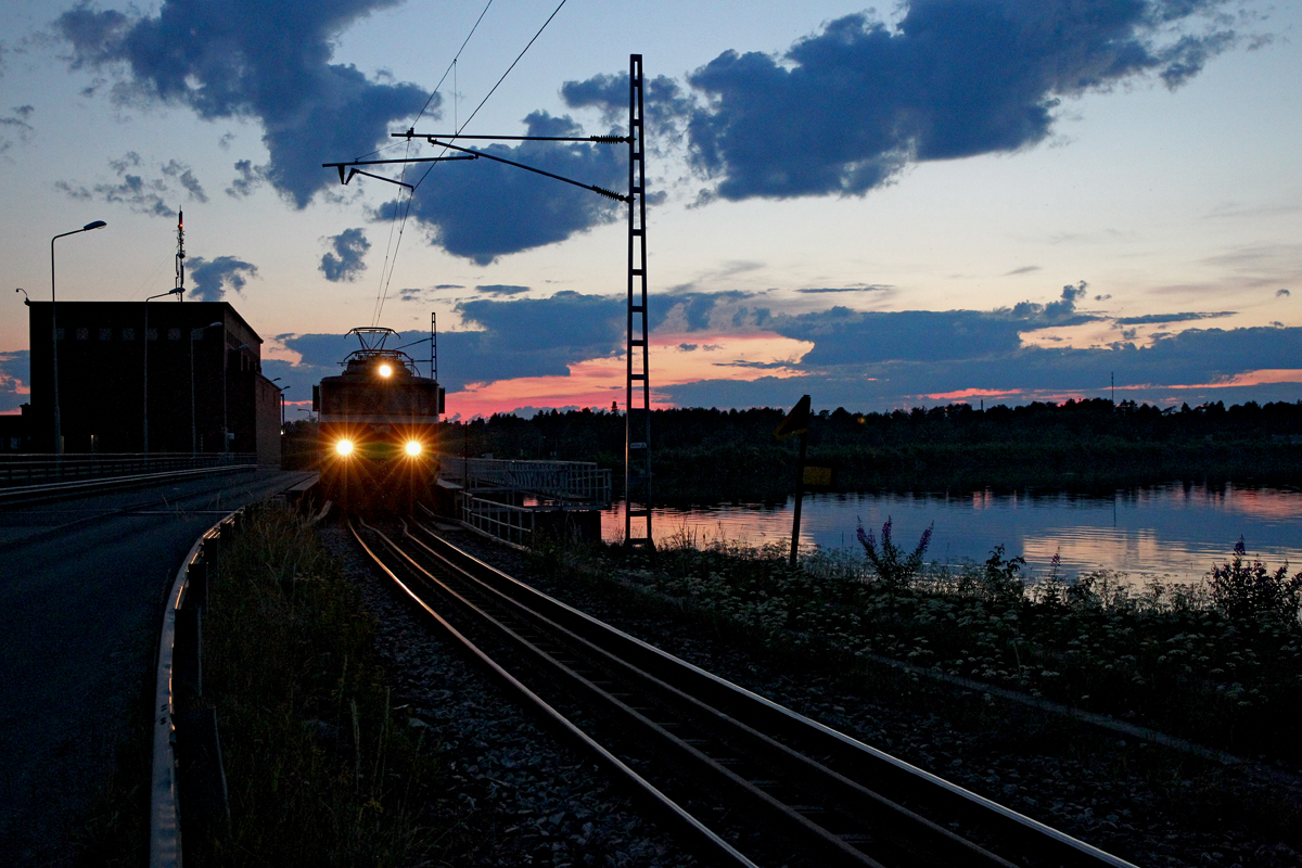 cool, wie sich die beiden Maschinen in die Kurve legen und die Stromabnehmer verleihen zusätzliche Dynamik. Wäre Bewegungsunschärfe erkennbar, könnte man meinen, der Zug rase mit 200 km/h vorbei... Schön tiefer Sonnenstand. Wenn das kein Kalenderbild wird...