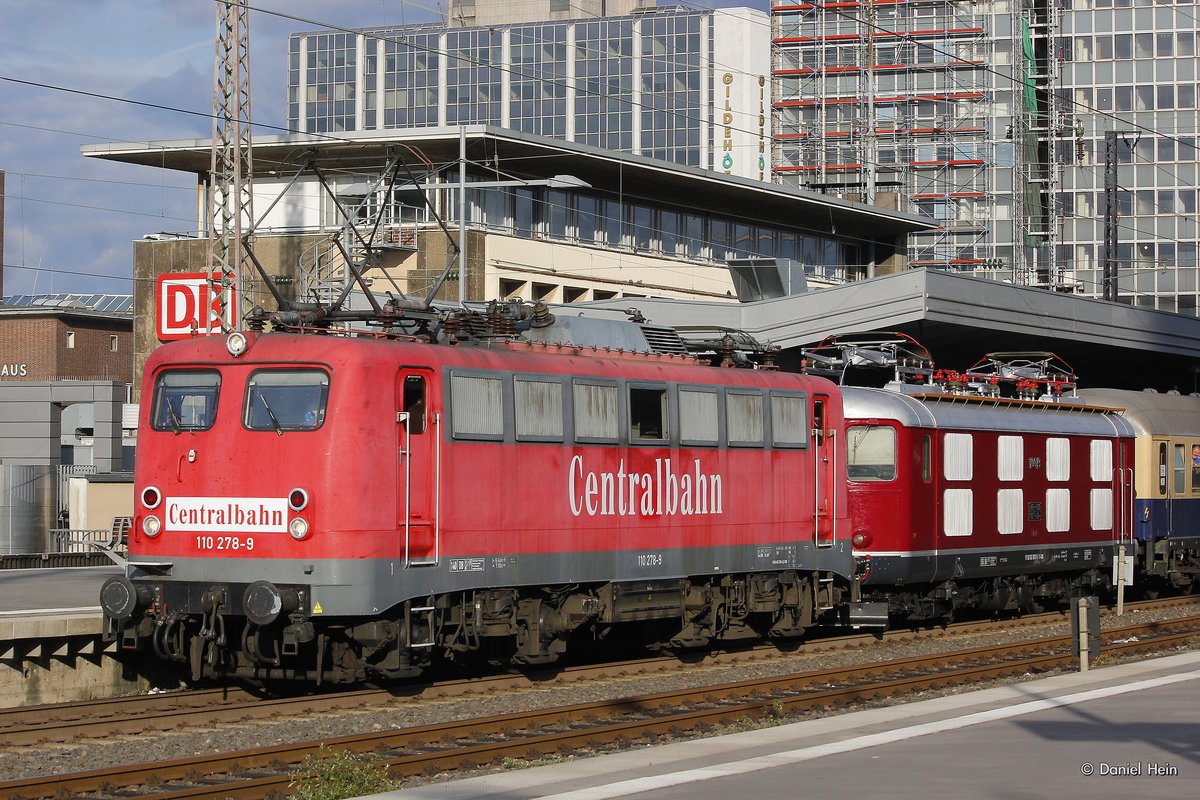 110 278-9+Re4/4 10019 mit Centralbahnsonderzug in Essen Hbf, am 09.10.2016. (zum Bild)