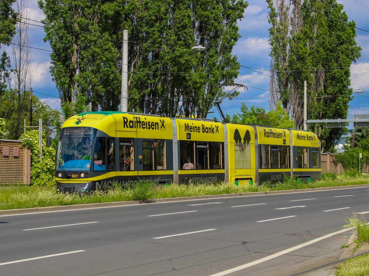 Genial -> viel Grau, und dann mittendrin das blaue Tram.