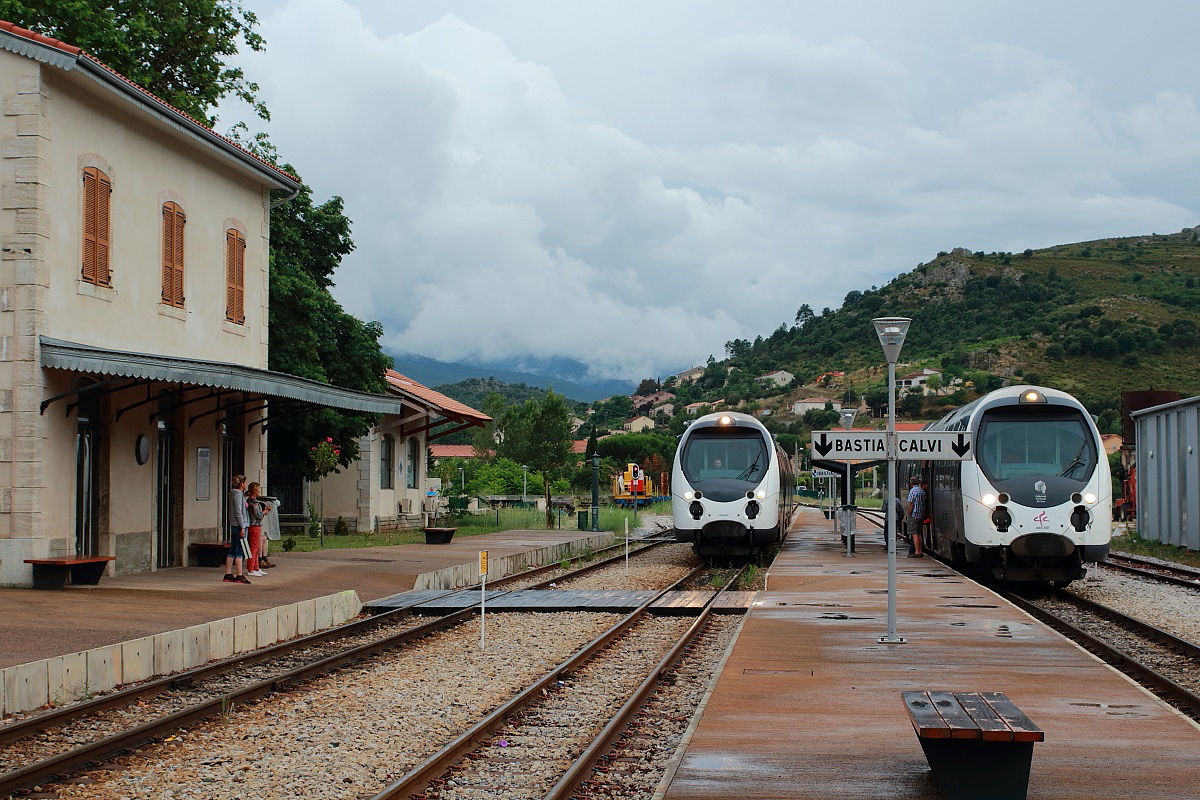 Herzlichen Dank Euch allen für Eure freundlichen Kommentare! Obwohl bei uns eher Baden und Entspannen angesagt war, blieb Zeit genug, um auch das eine oder andere Eisenbahnfoto zu machen. Zwar verkehren (sieht man einmal von der Strandbahn Calvi und den Vorortverkehren in Bastia und Ajaccio ab) nur wenige Züge über die Gebirgsstrecken und viele Fotostellen sind ohne Auto nicht erreichbar, aber allein die Mitfahrt in den Zügen macht den Besuch der korsischen Eisenbahnen wert. Die ersten 3 Sitzreihen in den neuen AMG 800 sind übrigens leicht ansteigend angeordnet, so dass von dort man dem Tw-Führer über die Schulter schauen kann und einen fantastischen Streckenblick hat. Einen Besuch der CFC kann ich nur wärmstens empfehlen. Und noch etwas: Der korsische Wein hat mir ausgezeichnet geschmeckt.