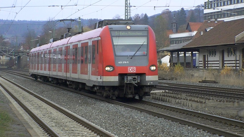 Eine 4-teilige BR 423 (423 276-5) der S-Bahn München durchfährt am 11.11.2011 den Bahnhof Kronach Richtung Lichtenfels über Gleis 3. (do obrazu)