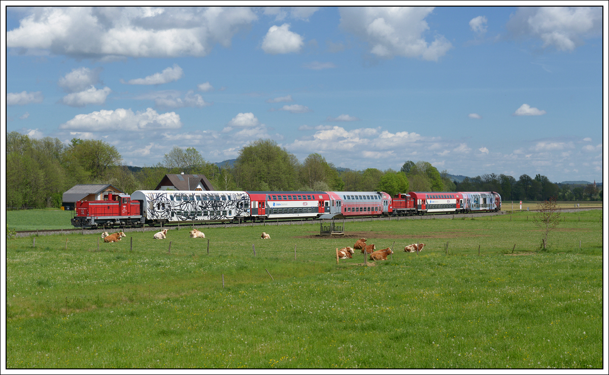 Wunderschön! Der Zug mit den beiden Lok ohnehin, aber ganz besonders der Hintergrund.
