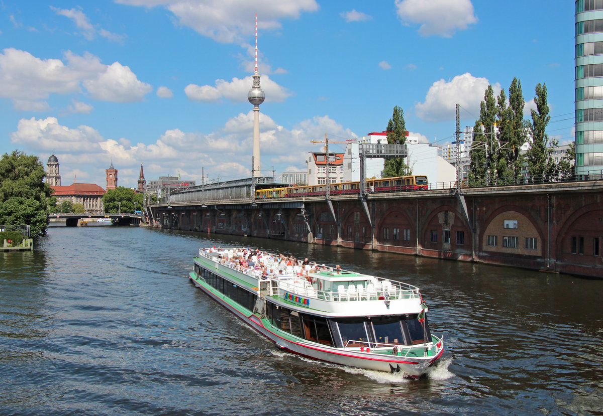 Heinz und Stefan muss man zustimmen. Zur gleichen Zeit sieht man auf diesem Bild mehr bekannte Seiten von Berlin, u.a. Rotes Rathaus, die Marienkirche, den Fernsehturm, die Spree, die S-Bahn. Ergebnis: Ein tolles Foto, eine perfekte Kombination von Stadt-, Schiffs- und Bahnbild.