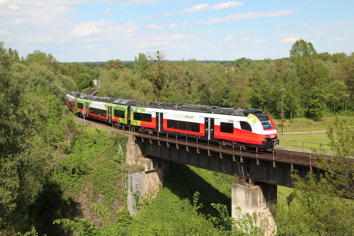 ein schönes Bild von dem Desiro in passender Umgebung. Etwas verwirrend ist in der Tat die Wortmarke ÖBB auf einem deutschen 642er, obwohl die ÖBB eigene hat. Vielleicht Fahrzeugmangel und von DB Regio ausgeliehen? Allerdings habe ich hier bei BB in dem Farbschema noch kein Bild gesehen oder übersehen? Jedenfalls sehr ungewöhnlich.
