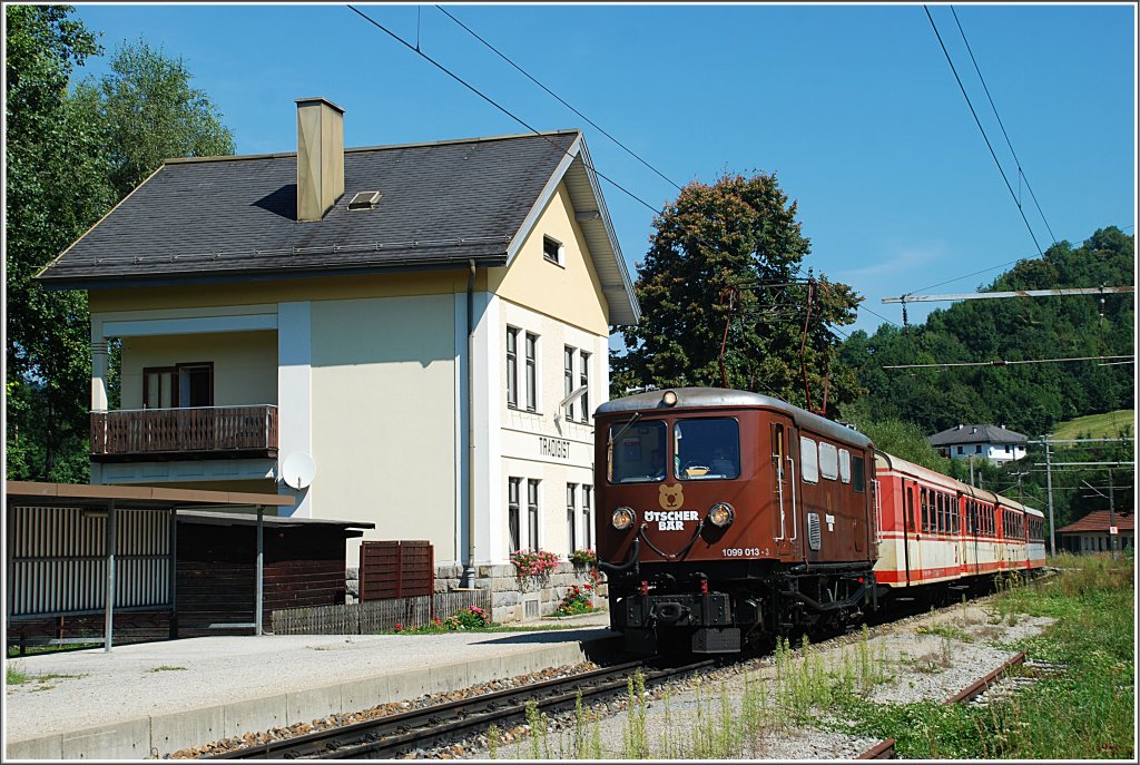 Am 01.Juni 2009 fuhr die 1099.14 mit dem R 6811 von St.Pölten nach Mariazell. Ich fotografierte sie wenige Meter nach der Ausfahrt von Kirchberg an der Pielach. (zum Bild)