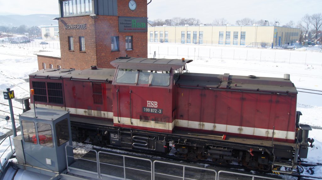 HSB 199 872-3 stellte am 17. Februar 2010 um ca 14.00 Uhr den Zug zum Brocken bereit. (zum Bild)