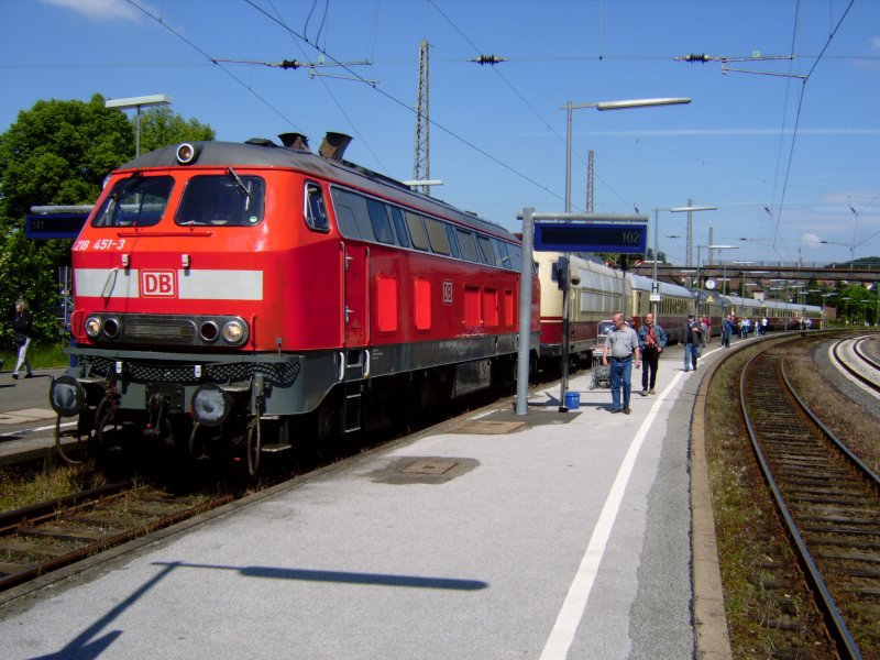 Br 218 451-3 und Br 103 235-8 am 30.05.09 mit dem TEE von Hannover Hbf nach Trier im Bahnhof Kreiensen. (zum Bild)