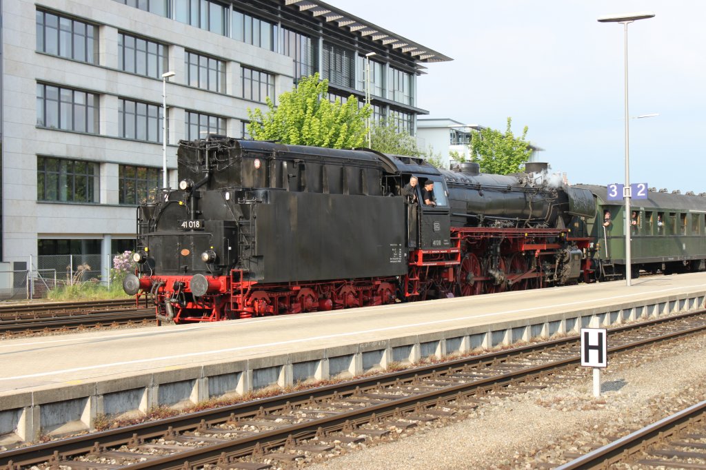 41 018 mit dem Sonderzug "Bodensee" am 1 Mai 2011 in Friedrichshafen Stadt, in kürze fährt der aus lindau kommende Zug weiter nach Ulm. (zum Bild)