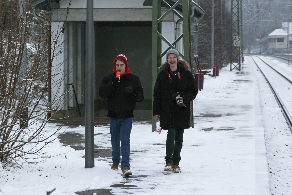 Das Empfangskomitee steht pünktlich in Konstanz bereit und heisst mich willkommen. Die Delegation besteht aus Olli, flankiert von Andreas und Rebecca. Herzlichen Dank an Olli für die Organisation und fachkundige Führung am BB-Treffen. Im Hintergrund noch sichtbar: links IR nach Biel/Bienne, rechts IC nach Hamburg mit der ersehnten Hochleistungsmaschine 101 142-8. Bahnhof Konstanz, 08. Dez. 2012, 10:00 (naar de afbeelding)