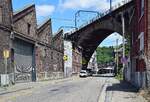 Eine Stadt ändert ihr Gesicht. Früher war Lüttich einst eine Industriestadt, besonders die Stahlindustrie spielte hier eine große Rolle. In den letzten Jahrzehnten ist die Stahlindustrie hier jedoch verschwunden. Aber auch viele andere Industrien haben geschlossen und Leerstand und marode Gebäude prägten viele Teile der Stadt. Mittlerweile ist die Stadt dabei im neuen Glanz zu erstrahlen. Die Straßenbahn ist nur ein Teil welcher der Stadt zu neuem Glanz verhilft. Besonders hier in der Rue de I`lle-Coune kann man den Kontrast zwischen Vergangenheit und Zukunft der Stadt sehr gut bildlich festhalten. Im Hintergrund fährt ein Urbos 100 Richtung Liège-Guillemins. Oben sieht man den Viaduc de Renory mit der Montzenroute. Lüttich 28.06.2025 (zum Bild)