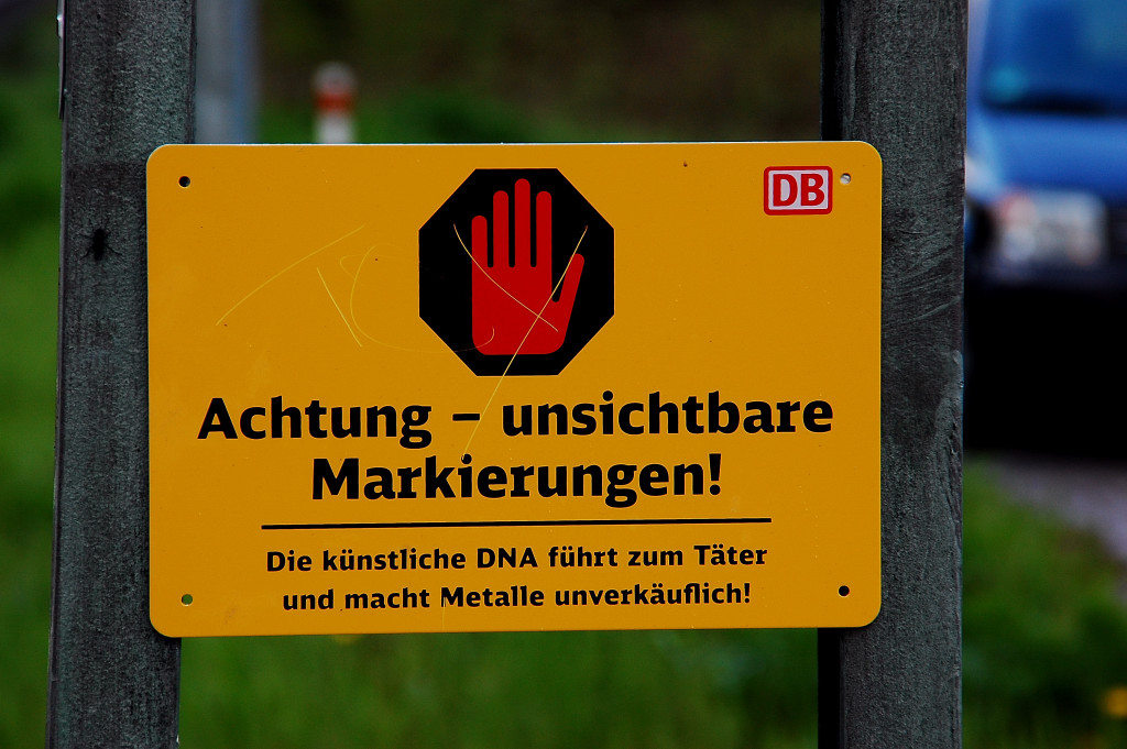 Mir stellt sich nur die Frage, was die DB unter "künstliche DNA" versteht? Also laut meiner schulischen Erfahrung ist die DNA immer natürlich. Und Metall macht sie auch nicht unverkäuflich *kopfschüttel* dieses Schild ist absurd.