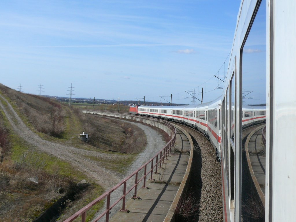 Hier IC 2261 in Gesamtlänge hier an der Kurve kurz nach Bruchsal. 27.2.10 (naar de afbeelding)