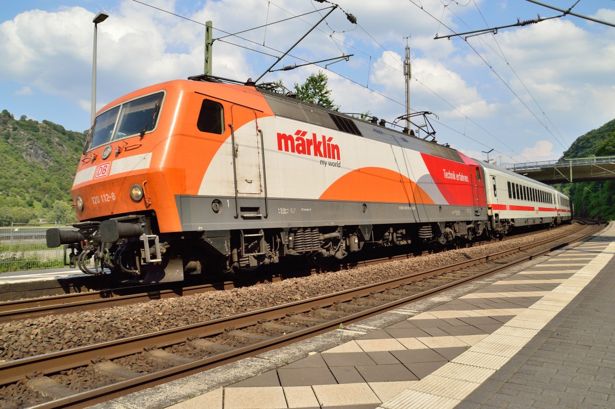 Schöne dynamische Aufnahme der Märklin 120-er mit dem IC-Leerzug.