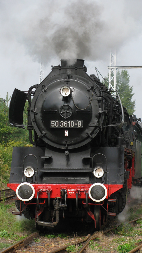 Dunkle Lok vor einem hellen Himmel, für Fotograf und Fotoapparat eine Gratwanderung, die beim Absturz meist am PC (Bildbearbeitung) repariert werden kann.