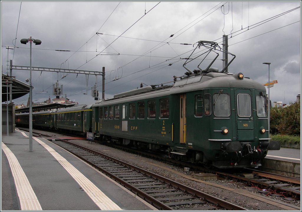Auf der Rückfahrt von Bouveret nach Bern war dann der RBe 4/4 N° 1405 an der Spitze des Extrazuges. Lausanne, den 8. Oktober 2011 (zum Bild)