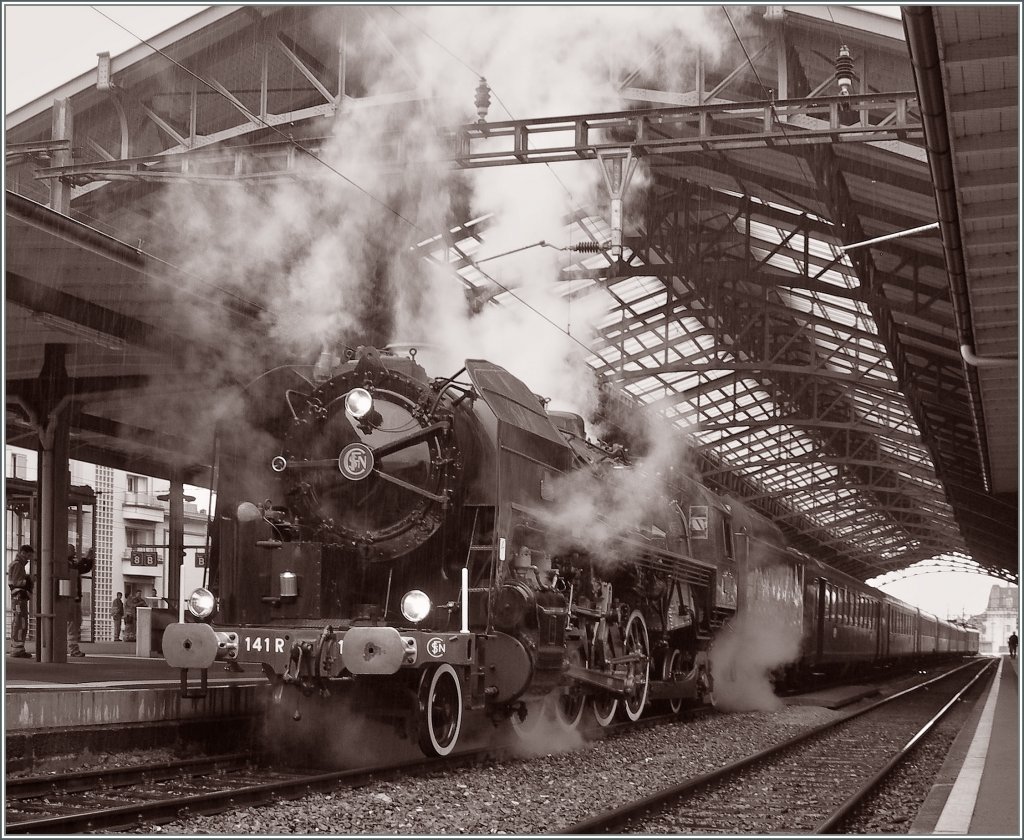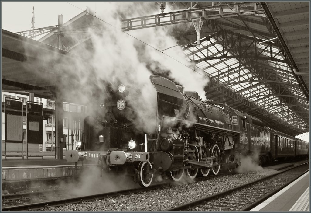 Sie raucht und dampft, dass es eine Freude ist... Die SNCF 141 R 1244 in Lausanne am 8. Oktober 2011 (zum Bild)
