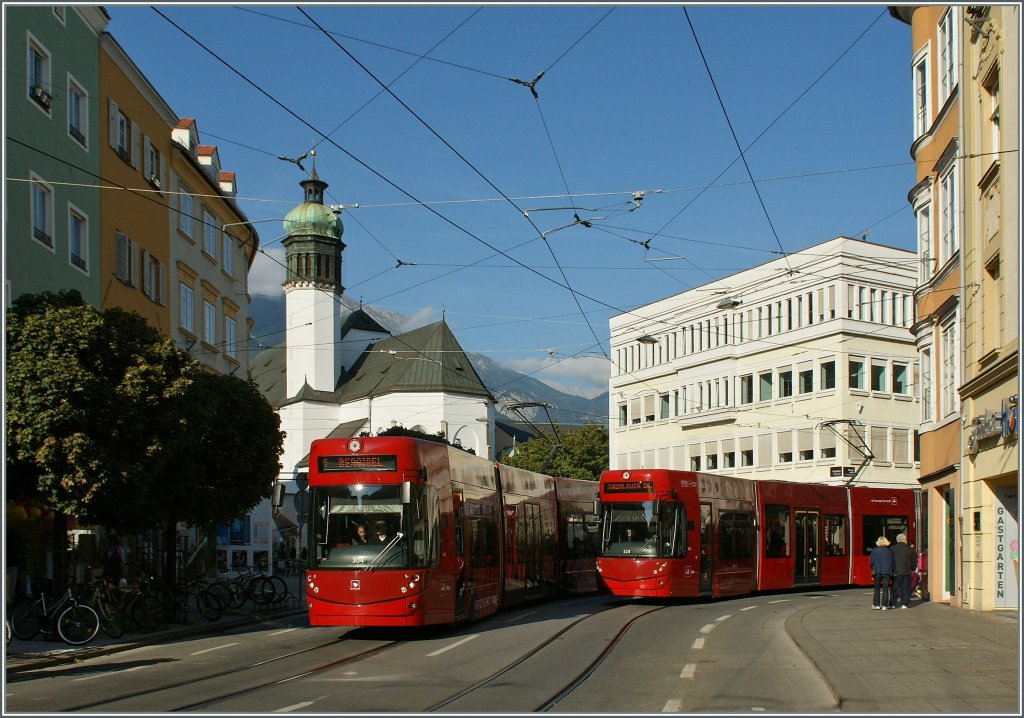 Es war etwas nervig, in Innsbruck die Strassebahn zu fotografienren, erst kamm lange keine und dann gleich zwei auf einmal... 15. SEp.t 2011 (zum Bild)