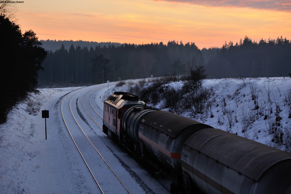 Mit 232 618-9 und dem EZ45360 von Cheb(Eger) nach Nürnberg Rbf endete ein langer und anstrengender Fototag bei Waldershof. Leider ließen sich beide angekündigte Güterzuge erst zur Dämmerung blicken, jedoch entschädigte schließlich dieses Stimmungsbild. 07.02.2015 (naar de afbeelding)