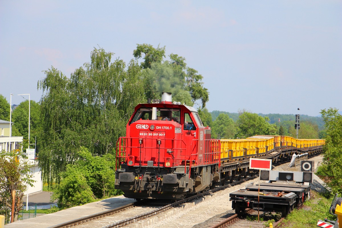 eine interessante Aufnahme von den Arbeitszug, interessant auch wie er sich über die Brücke hebt und senkt.