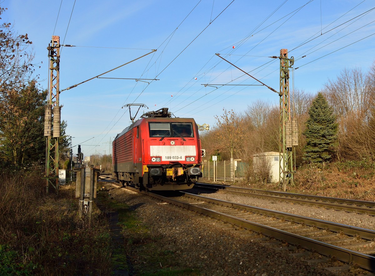 Bei Lintorf kommt die 189 033-4 als Lz gen Ratingen gefahren. 12.1.2014 (zum Bild)