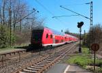 Anfang April 2015 sah es noch ein wenig farblos aus an der Kbs 485 bei Rimburg. Als Aktzent setze die 111 158 mit dem Wupper Express eine leuchtende rote Linie in die Landschaft. Szenario vom Gehweg aus ,direkt neben der Strecke liegend. (zum Bild)