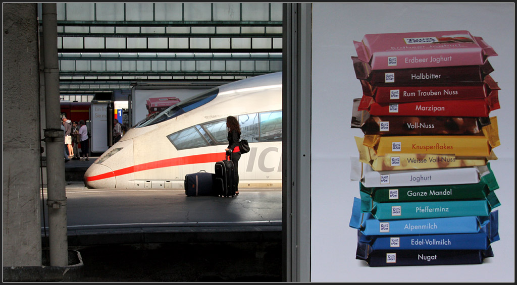 Der Weg zum ICE, Koffer schieben, am Bahnsteig stehen und warten - alles ein wenig anstrengend. Dann im Zug den Koffer verstauen, Platz nehmen und entspannen.