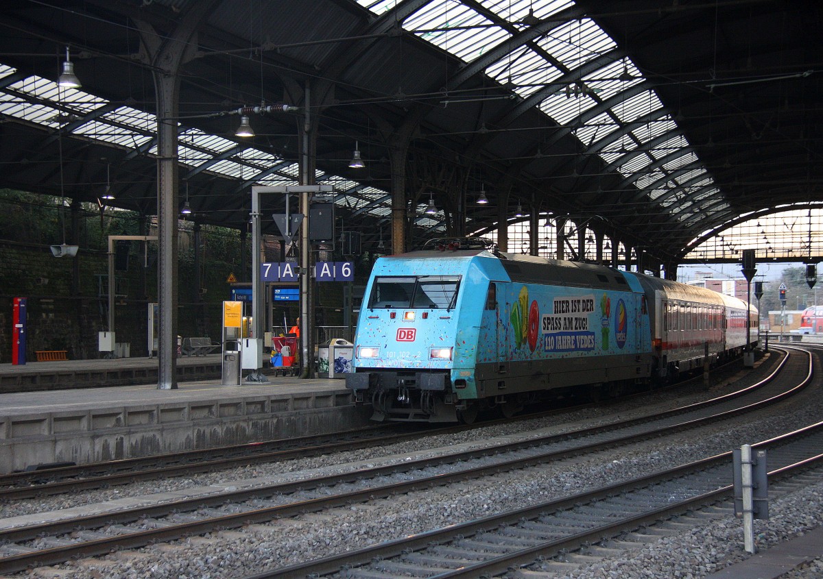 101 102-2 "110 Jahre Vedes" steht im Aachener-Hbf mit einem IC und wartet auf die Abfahrt nach Köln-Hbf. Aufgenommen vom Bahnsteig 2 vom Aachen-Hbf in Abendsonne vom 22.3.2015. (zum Bild)