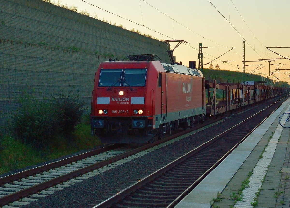 185 305-0 mit einem Leerzug für die Autoindustrie in Allerheiligen am 17.9.2014 (zum Bild)