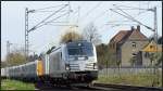 Die Siemens Vectron 247 901 ist mit einer Überführung unterwegs nach Aachen West. Am Haken ein englischer Triebwagen. Bildlich erfasst am 07.April 2015 bei Rimburg auf der Kbs 485. (zum Bild)