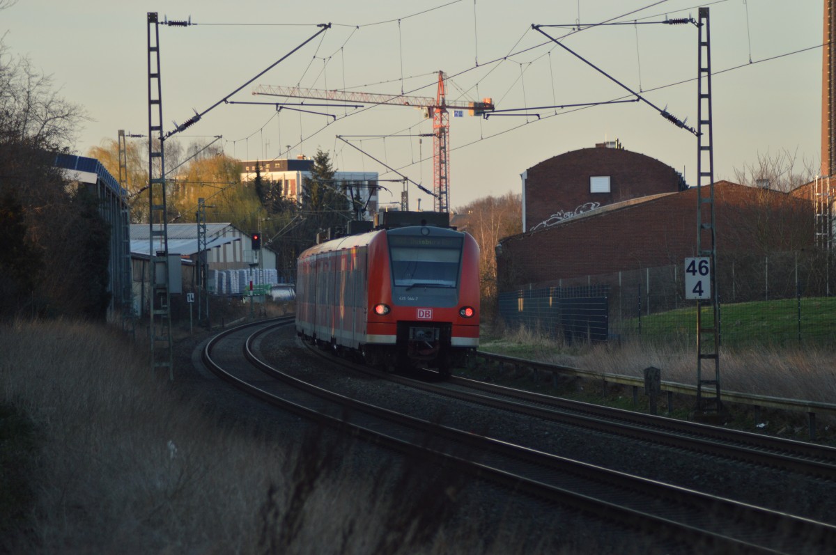Nachschuß auf einen RB33 an dessen Ende der 425 082-5 hängt. Der gleich in Lindern flügelt und nach Heinsberg fährt. 22.3.2015 (zum Bild)