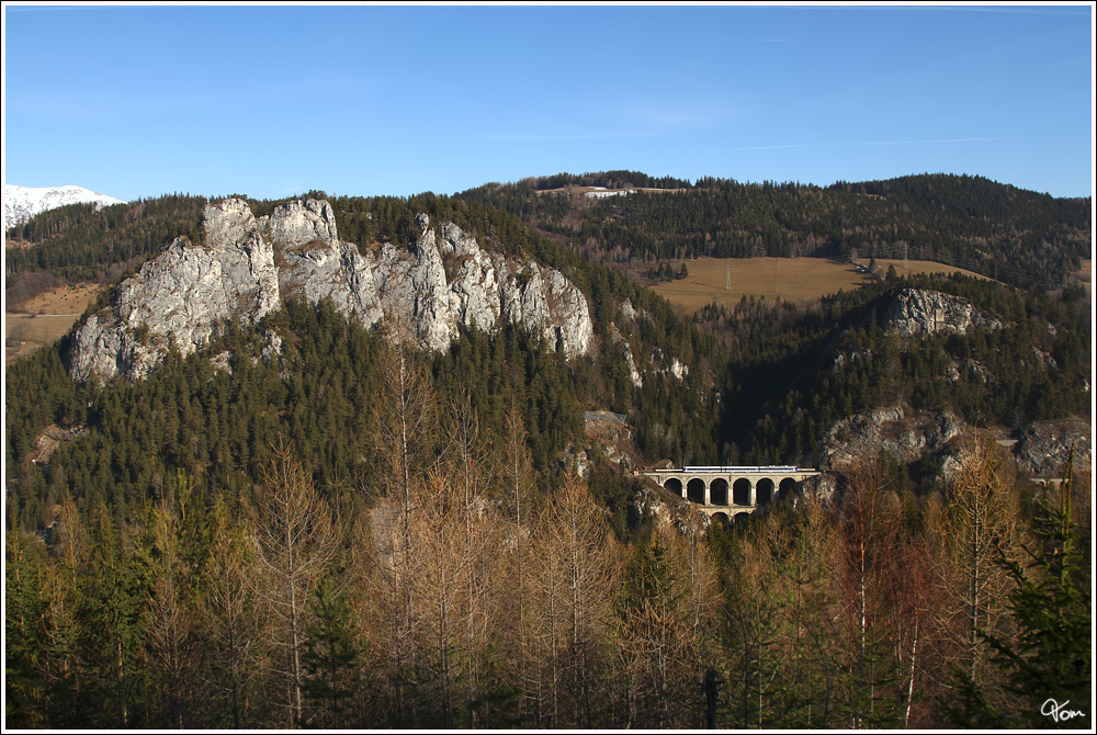 Als R 2956 (Semmering-Payerbach-Reichenau) befährt ET 4020 236 das Kalte Rinne Viadukt nahe Breitenstein. 24.3.2012 (naar de afbeelding)
