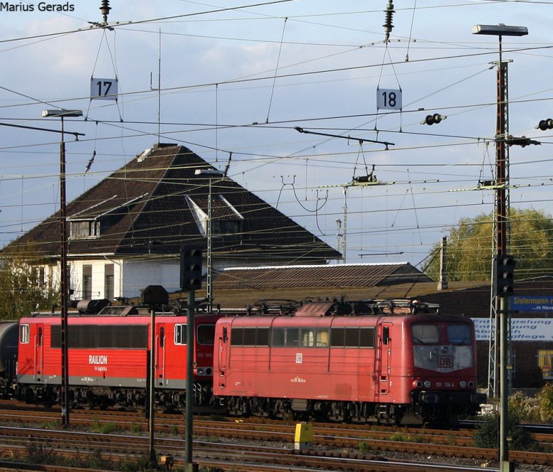 Die orientrote 151 134 steht zur Ruhe in Aachen-West abgestellt 18.10.09 (zum Bild)